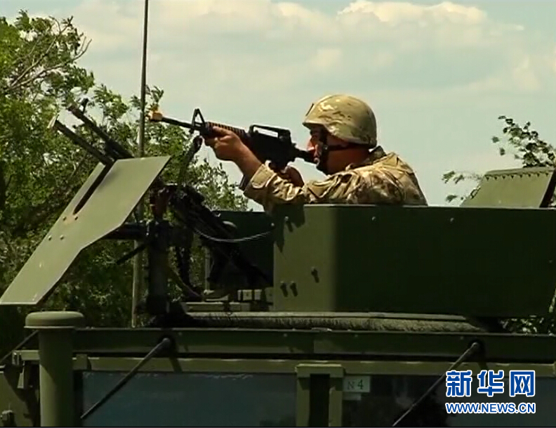 7月19日,在格鲁吉亚首都第比利斯附近的瓦贾尼军事基地,北约五国和格鲁吉亚军人参加代号为“敏捷精神2015”的多国联合军事演习。 这是北约今年第二次在格境内举行类似的军事演习。 新华社发(达维特·卡希尼摄)