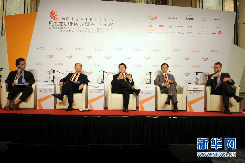 慧眼中国环球论坛2015于7月20日在新加坡举行。图为年会主题讨论“私募资本:为中国经济带来处处契机”现场。主题讨论嘉宾为弘毅投资董事长、总裁赵令欢(左二),新加坡交易所执行副总裁周士达(左三),高原资本董事总经理涂鸿川(右二)及天泉投资总裁陈镇洪(右一)。新华网发(邓智炜摄)