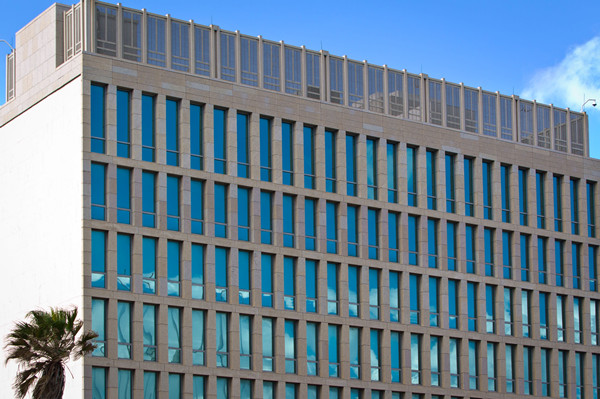 2015年7月1日拍摄的美国驻古巴利益代表处所在大楼。(新华社/欧新)
