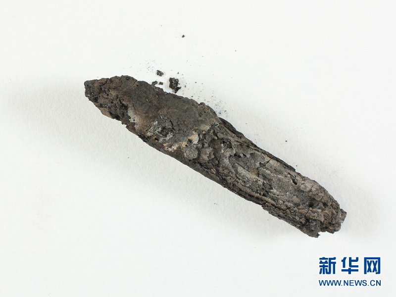 被烧毁的希伯来圣经羊皮卷残卷。新华社发(以色列文物局供图)