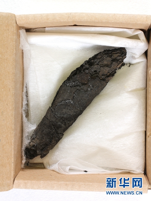 被烧毁的希伯来圣经羊皮卷残卷。新华社发(以色列文物局供图)