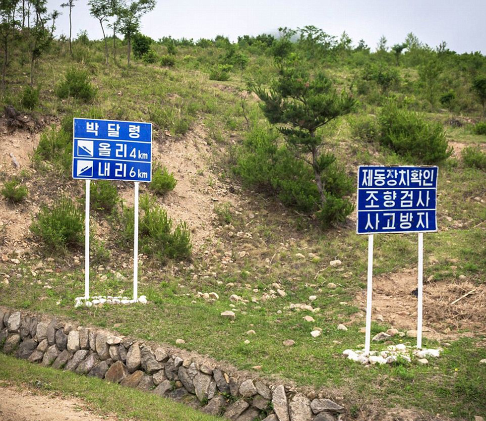 当游客穿过边境进入朝鲜后,看到朝鲜明川郡的路标。(网页截图)