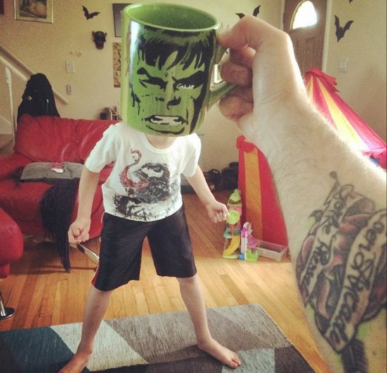 兰斯·柯伦是一家纪念品店的老板,他用各式主题马克杯,把他的几个孩子一一变身为超级英雄和其他卡通人物形象。从绿巨人到蜘蛛侠,从蝙蝠侠到小丑,还有杰克和海绵宝宝。在众多的形象之下,兰斯的孩子们也是配合的相当给力,一张张图片满满都是父亲与孩子之间的爱和欢乐。