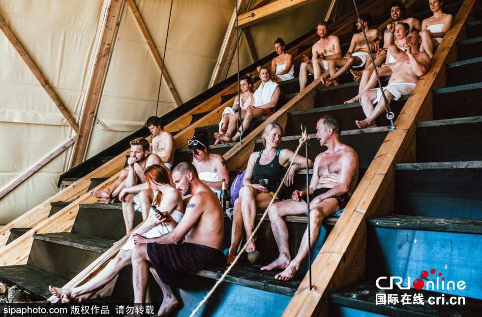近日,挪威一个名为“SALT”的文化组织在北极圈内的一座岛上打造了号称全世界最大的公共桑拿浴房,可容纳100个人同时使用。桑拿房面朝北冰洋,为游客提供提供不可多得的冰山海景。房内有酒吧,还能聆听挪威音乐人Biosphere专门创作的环境音乐。据称,该建筑的设计理念来自挪威游牧民族晒鱼的架子。图片来源:Sipa Photo