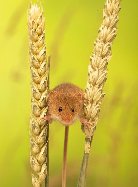 谈到这组照片时,马克说:“这两只小巢鼠的行动非常敏捷迅速,因此我们只能让它们在小麦间来回奔跑,并尝试着拍下它们在麦田间来去自如的场景。当它们啃食小麦时,小巢鼠还常常用尾巴勾住小麦来帮助自己维持平衡。”同时马克还表示:“能够看到这些小家伙轻松无比地在麦田中爬上爬下、来去自如的场景真是太棒了。”