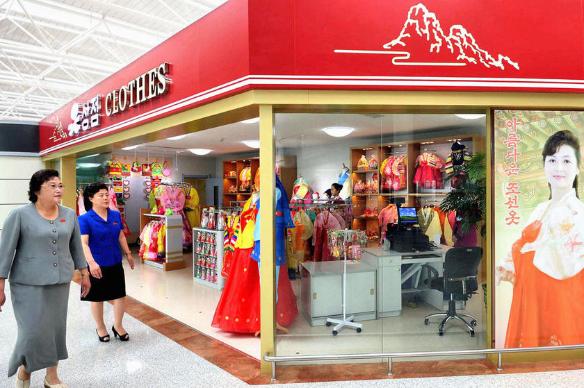 最终在金正恩莅临平壤国际机场时,免税店里没有外国名牌,清一色全是朝鲜产品。