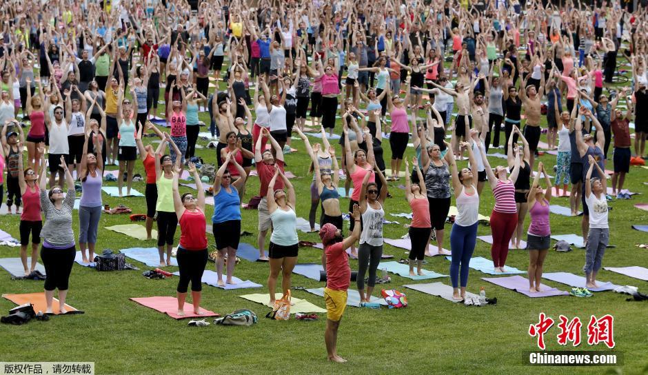 7月22日,加拿大渥太华,大批民众来到国会山前的草坪上,免费学习瑜伽课程,场面极为壮观。