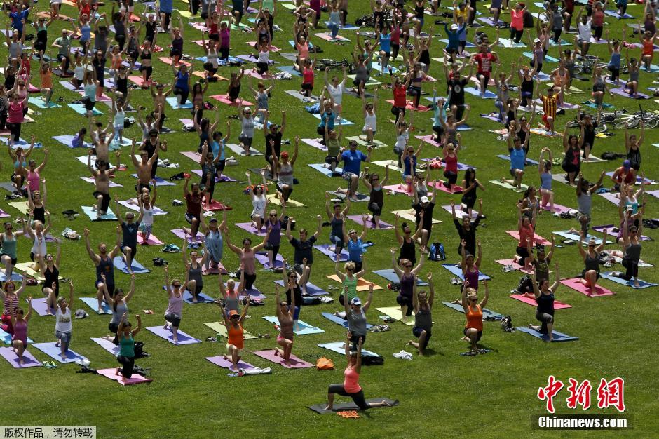 7月22日,加拿大渥太华,大批民众来到国会山前的草坪上,免费学习瑜伽课程,场面极为壮观。