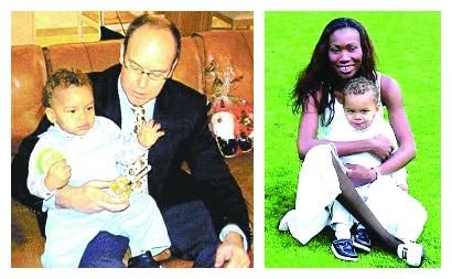 阿尔贝亲王怀抱他和法航空姐的私生子亚历山大(左图);亚历山大和他的母亲妮可·科斯特(右图)。