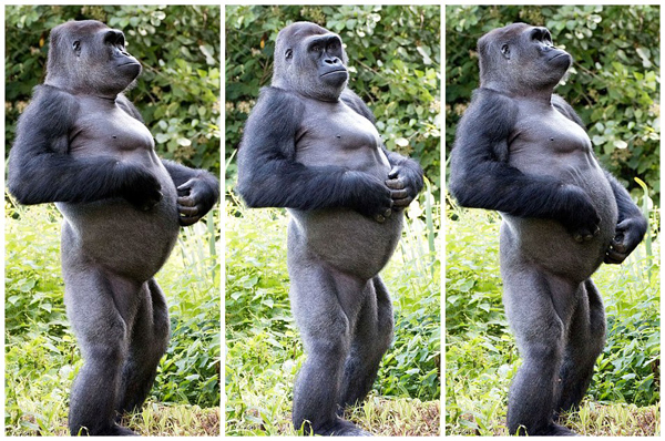 这只名叫基伏(Kivu)的大猩猩做出了酷似人类的举动,令人惊奇。其饲养员认为这可能是它想要更加吸引参观者的注意。动物园管理员尼尔 贝蒙(Neil Bemment)表示:“这种行为对于猩猩来说并不是什么稀奇的事情,我们觉得搞笑主要原因是这让我们想到自己。有些学者认为直立代表着一种控制权的信号,但是我认为它是为了有更好的视野,并且它可以做到。”