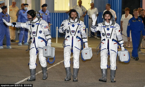 当地时间2015年7月23日,哈萨克斯坦拜科努尔航天发射场,俄罗斯联盟号TMA-17M飞船成功发射升空,搭载美国宇航员Kjell Lindgren、日本航天员油井龟美和俄罗斯宇航员Oleg Kononenko前往国际空间站。(图片来源:Sipa)
