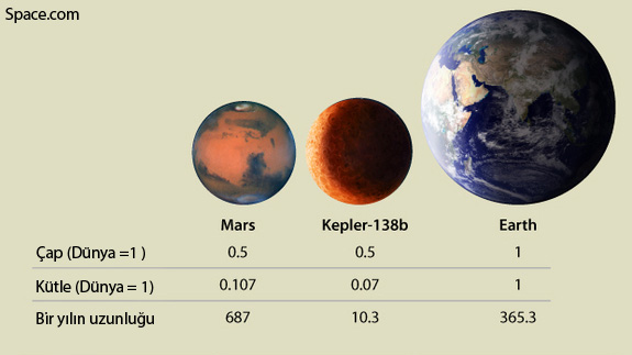 每次行星凌日都会遮挡一部分的恒星光,此时科学家能够测量出行星的大小,该方法也是开普勒望远镜发现数千颗系外行星的基本方法。一旦我们得知系外行星的质量和体积,就能够计算出其密度,并推测行星表面的物质构成,以确定该行星是否由岩石构成、水或者气体构成。Kepler-138b的密度显示,它与地球或者火星较为接近,初步判断这是一颗火星大小的系外行星。但Kepler-138b是否是岩质行星,仍然需要进一步观测。