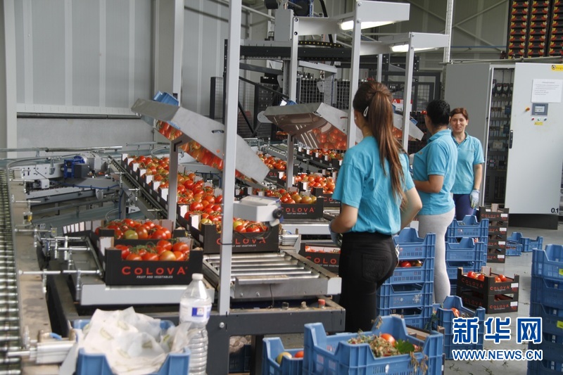 7月22日,在比利时东佛兰德省丹泽市“番茄大师”园艺农场,当地员工对西红柿进行装箱处理。中国驻比利时大使曲星及使馆科技处参赞沈龙一行22日参观了比利时著名的高科技西红柿种植园“番茄大师”,考察学习其先进的种植技术、自动化的日常维护、清洁的环境管理及高效的分拣处理等。新华社记者 吴昌荣摄