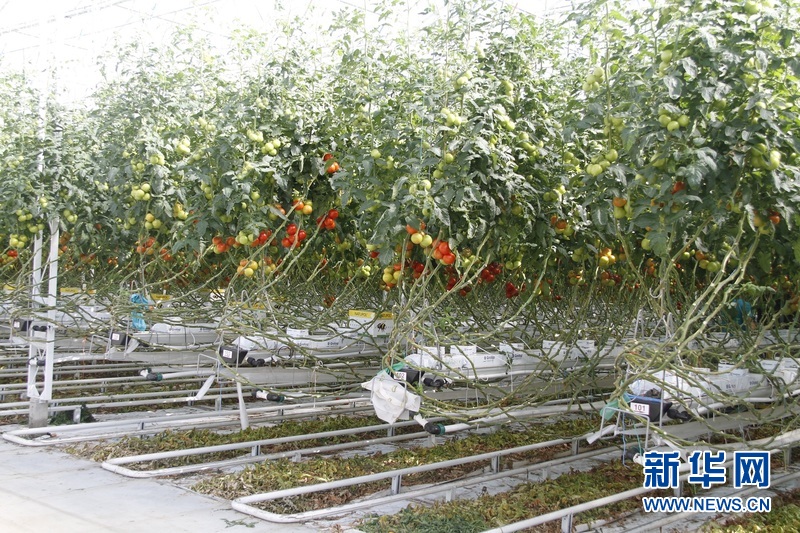 7月22日,在比利时东佛兰德省丹泽市“番茄大师”园艺农场,高三四米的西红柿树。中国驻比利时大使曲星及使馆科技处参赞沈龙一行22日参观了比利时著名的高科技西红柿种植园“番茄大师”,考察学习其先进的种植技术、自动化的日常维护、清洁的环境管理及高效的分拣处理等。新华社记者 吴昌荣摄