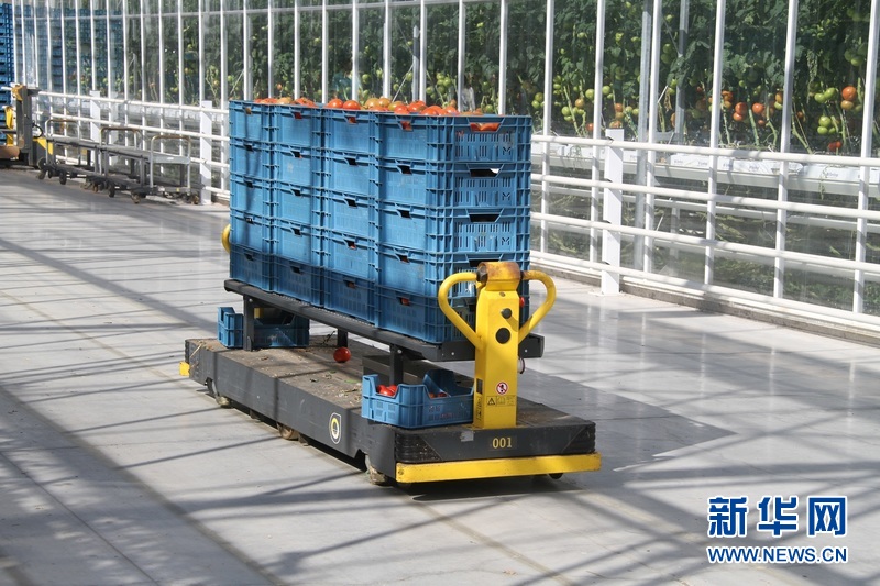 7月22日,在比利时东佛兰德省丹泽市“番茄大师”园艺农场,对西红柿树进行日常管理、维护及运送、按固定轨道运行的“机器人”。中国驻比利时大使曲星及使馆科技处参赞沈龙一行22日参观了比利时著名的高科技西红柿种植园“番茄大师”,考察学习其先进的种植技术、自动化的日常维护、清洁的环境管理及高效的分拣处理等。新华社记者 吴昌荣摄