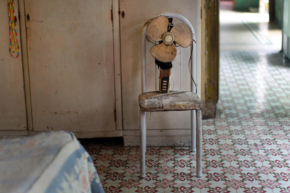 白天气温炎热,人们利用中国和俄罗斯制造的零部件拼凑成风扇。(网页截图)