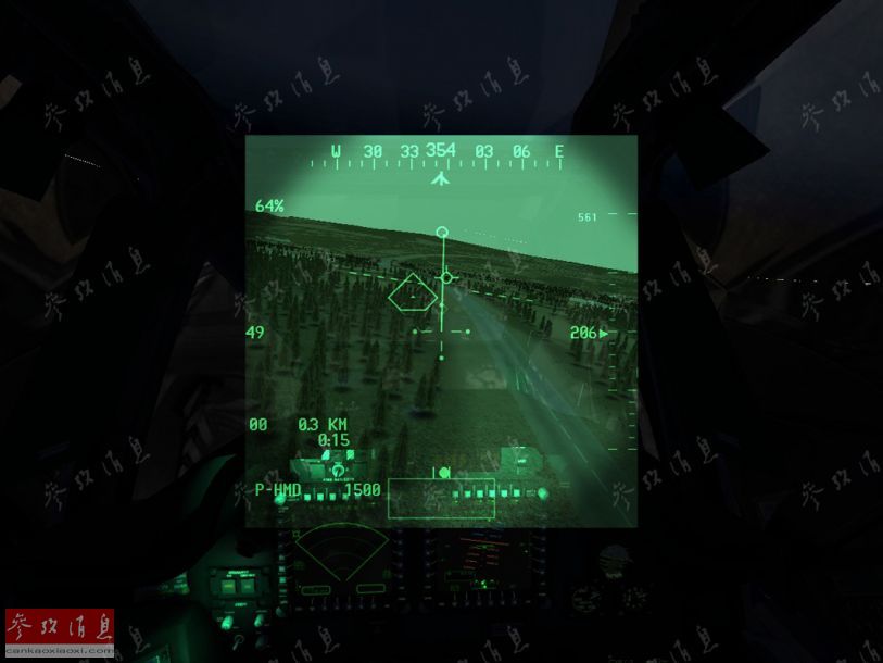 图为军事模拟游戏《武装突袭2》中,”阿帕奇“飞行员利用PNVS夜视系统,看到的夜视飞行图像,虽与现实中的略有差异,但已十分相似。