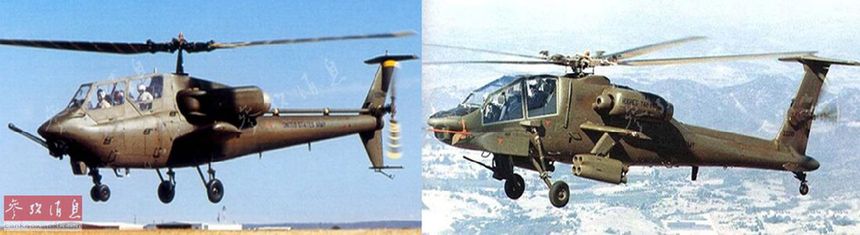 当时美国国内有两大厂商的方案进入了AAH项目竞标的最终阶段,分别是贝尔直升机公司的YAH-63A(左图)和休斯飞机公司(1984年并入麦道公司,麦道后于1997年被波音公司收购)的YAH-64A(这时的原型机使用的是T字形垂尾)。