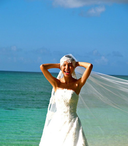 画面中,穿上白色拖尾长纱的Linda宛 若女神般圣洁高贵,并幸福宣称实现了“当年那个小女孩的梦想”。情之所至,Linda更拿出经典的大笑,自嘲是个“大嘴巴新娘”。