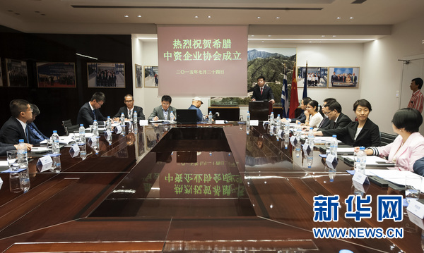 希腊中资企业协会7月24日在雅典成立,中国驻希腊大使邹肖力和十多家希腊中资企业负责人出席成立大会。图为成立大会现场。新华社记者刘咏秋摄