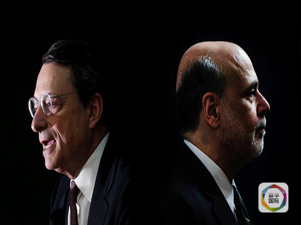 图为欧洲央行行长德拉吉(左)和美联储前主席伯南克