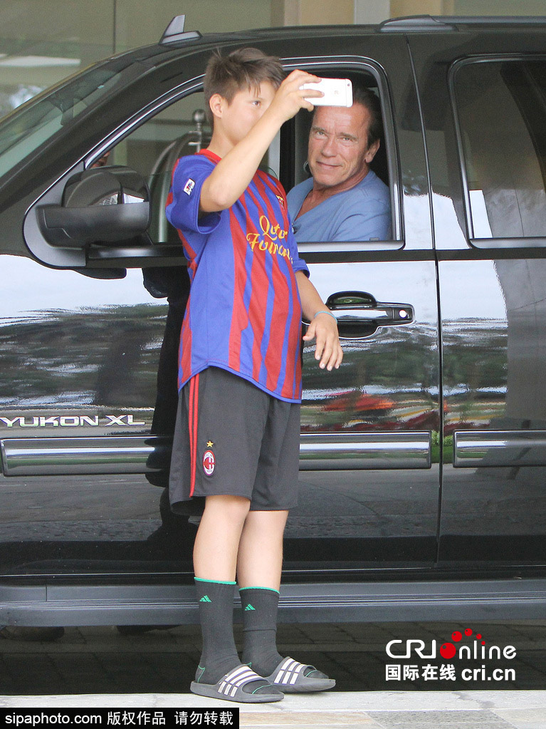 施瓦辛格牵爱犬现身手臂壮硕爆青筋 与小粉丝亲密合影