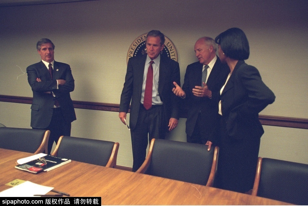 当地时间2015年7月28日讯,美国,最新一组记录9·11恐怖袭击后布什政府主要成员反应的照片近日得以公布,照片由前美国副总统迪克·切尼的摄影员工拍摄,应一位纪录片制作人根据《信息自由法》的照片公开要求而最终公布出来。照片真实反映了9·11恐怖袭击后美国高层官员的震惊和恐惧。