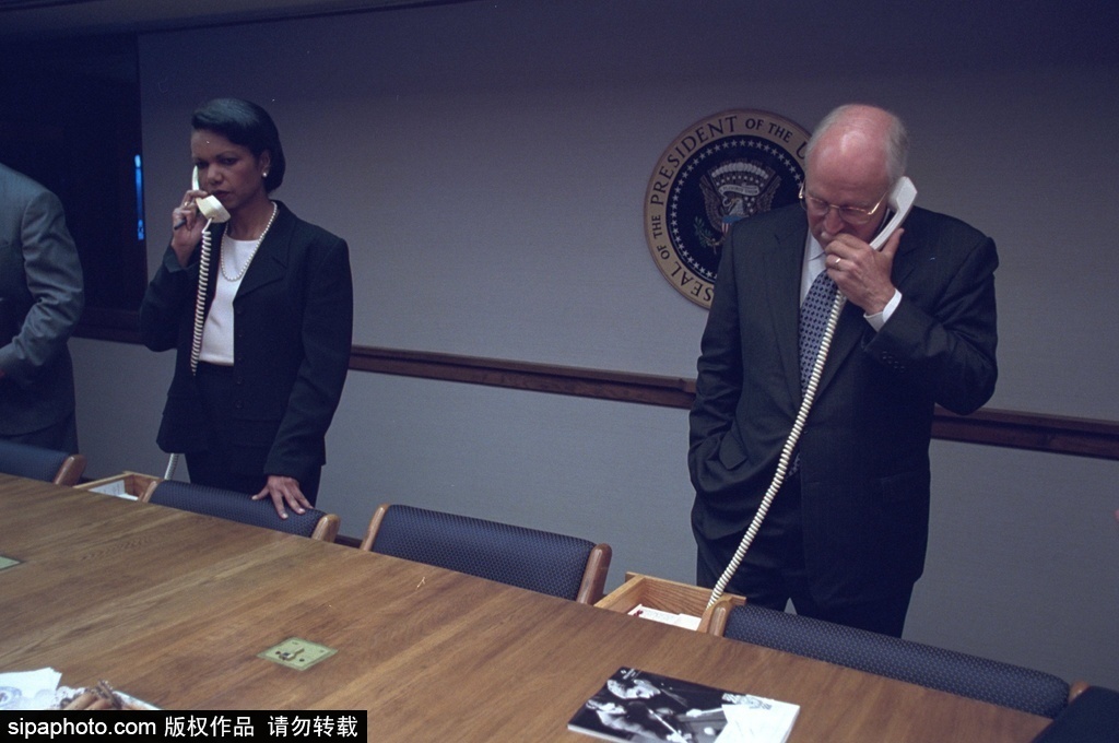 当地时间2015年7月28日讯,美国,最新一组记录9·11恐怖袭击后布什政府主要成员反应的照片近日得以公布,照片由前美国副总统迪克·切尼的摄影员工拍摄,应一位纪录片制作人根据《信息自由法》的照片公开要求而最终公布出来。照片真实反映了9·11恐怖袭击后美国高层官员的震惊和恐惧。