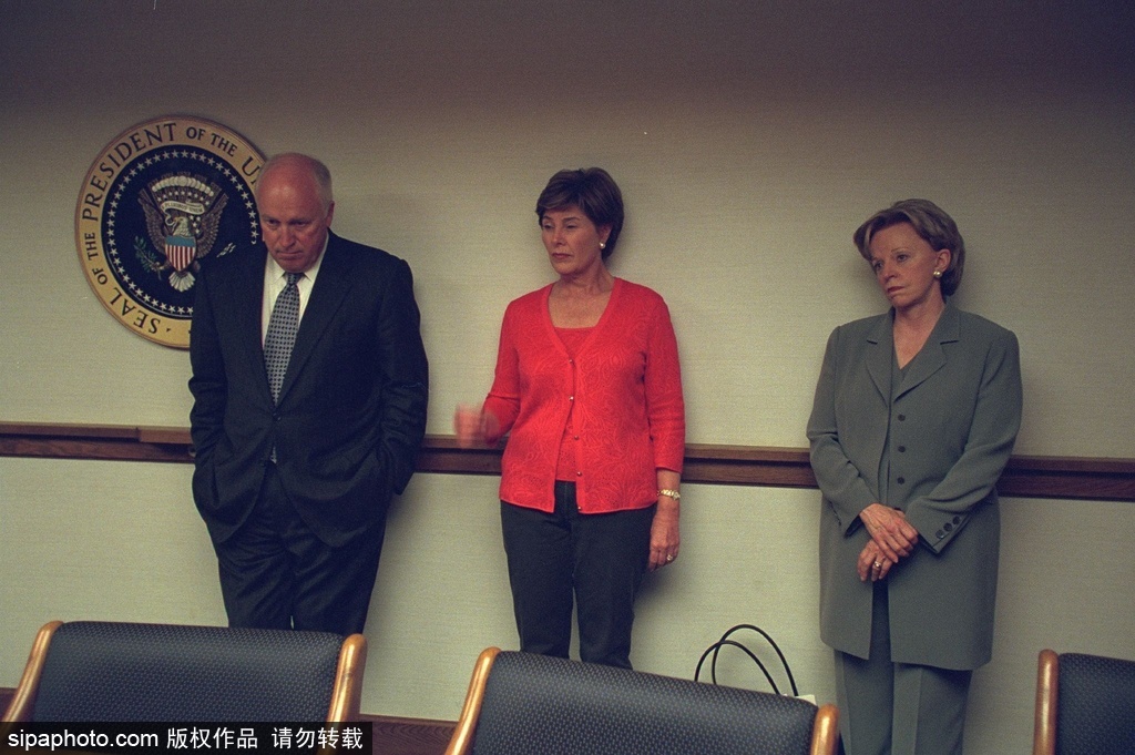 当地时间2015年7月28日讯,美国,最新一组记录9·11恐怖袭击后布什政府主要成员反应的照片近日得以公布,照片由前美国副总统迪克·切尼的摄影员工拍摄,应一位纪录片制作人根据《信息自由法》的照片公开要求而最终公布出来。照片真实反映了9·11恐怖袭击后美国高层官员的震惊和恐惧。