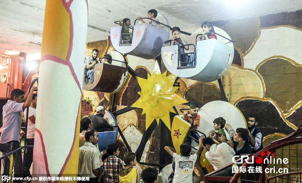 当地时间2015年7月26日,叙利亚大马士革,叙利亚儿童在地下游乐场玩耍,该游乐场是活动家为孩子们建设的,目的是为了不让孩子受到战争轰炸的影响。图片来源:CFP