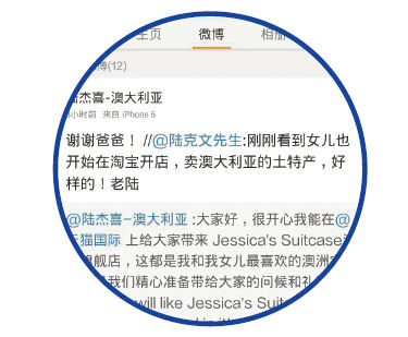 没错,这位陆杰喜就是澳洲前总理陆克文的女儿杰茜卡(Jessica Rudd),她在淘宝开店卖澳洲特产。店铺首页挂着她本人和马云的合影,而中文流利的陆克文也努力为女儿推广。