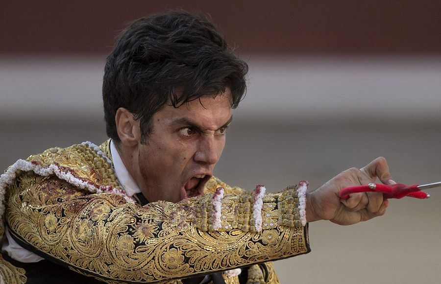 西班牙斗牛士剑刺公牛反被顶受伤(高清组图)