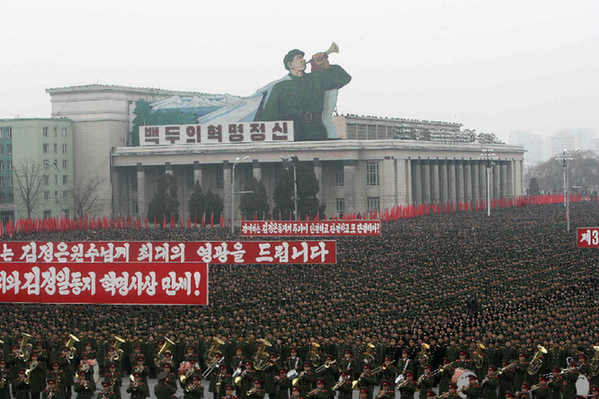 2013年2月14日,朝鲜举行军民大会庆祝第三次地下核试验成功。新华社记者张利摄