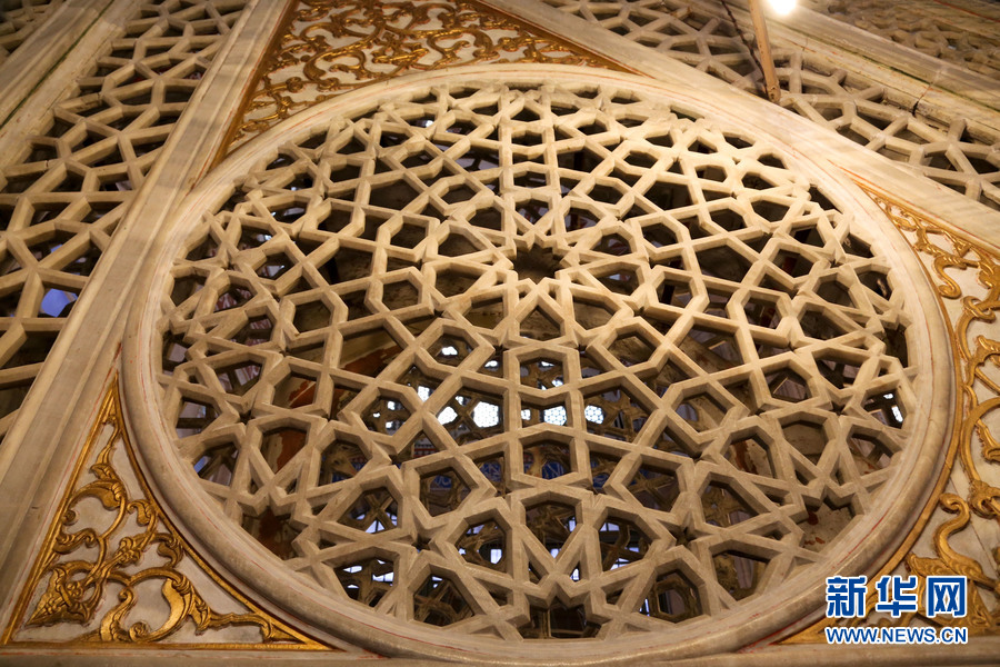 图为清真寺内最令人惊叹的手工镂空雕刻。