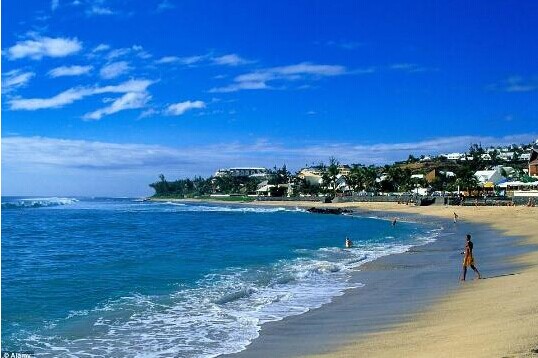 图为残骸的发现地点,法属留尼旺岛的海滩