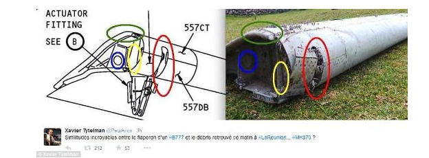 航空专家根据现场图片分析称,这块残骸或为波音777机翼的襟副翼,用于控制飞机的水平倾斜,而马航MH370客机则同属于波音777机型。