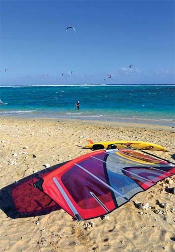 我们在留尼旺的几天时间里风浪都比较大,不过来到海边却发现海滩上依旧人声鼎沸,原来好动的法国人和一些欧美游客正利用风浪玩起了刺激的海上运动。几米高的海浪中早已有了十多名冲浪好手相继尝试挑战,虽然他们中的大部分只是业余爱好,并非职业冲浪选手,不过一招一式也是颇为认真。靠近海岸附近的浅水区则更多是风帆、摩托艇、皮划艇、海浪滑板等各项水上运动的世界,对于他们来说,大风就是运动的动力,海水就是运动的场地。一般岛上的家庭都会趁着周末举家开车来到海边,喜欢玩水的玩水,而其他家庭成员则在沙滩上聚餐或者聊天,如此融入大自然真是潇洒。