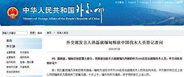 外交部:缅方将于明天移交155名中国伐木人员