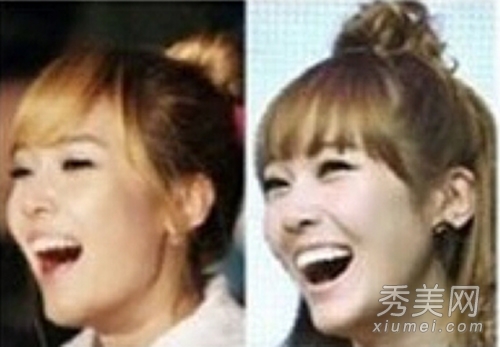网友圈出杰西卡刚出道时和现在的照片对比,下颌角之前是有菱角的,现在菱角已经没有了,长长的下巴比以前精致了,脸也没以前平了。