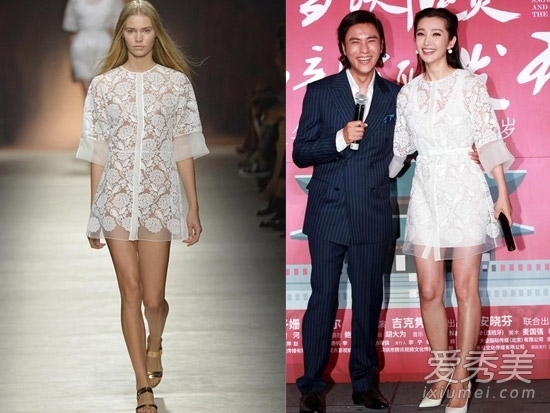 李冰冰本来就是天生的衣服架子,什么衣服穿在身上都没有任何违和感,别管是小清新还是高冷女神,各种Style轻松驾驭。Blumarine 15春夏透视钩花礼服裙,冰冰选择的是一双同样高贵气质白色高跟鞋搭配,整个造型简洁大方,少了那么一丢丢华丽却多了几分优雅知性。