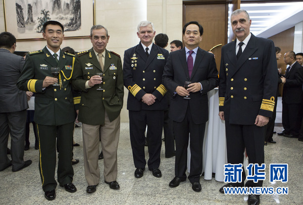 其他国家驻阿武官在招待会上交谈。(马丁·萨巴拉 摄)