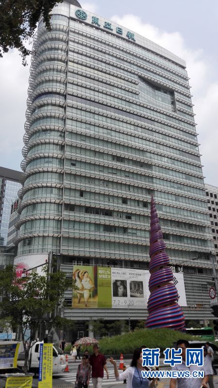 《东亚日报》为韩国三大报纸之一,日订阅量为91万份。图为《东亚日报》楼。(图片来源:新华网)
