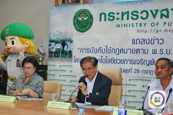 泰国卫生部长拉察达·拉察达纳文(中)29日在卫生部介绍《代孕法》相关情况。