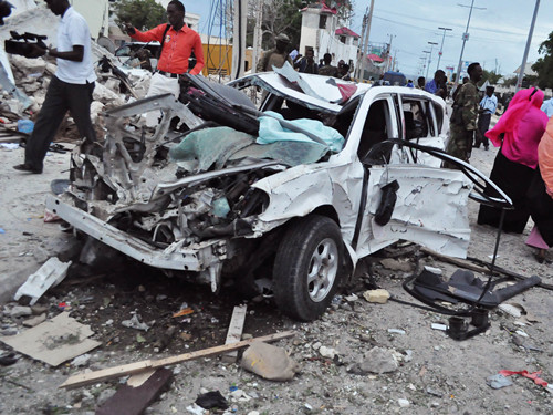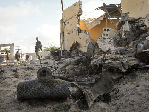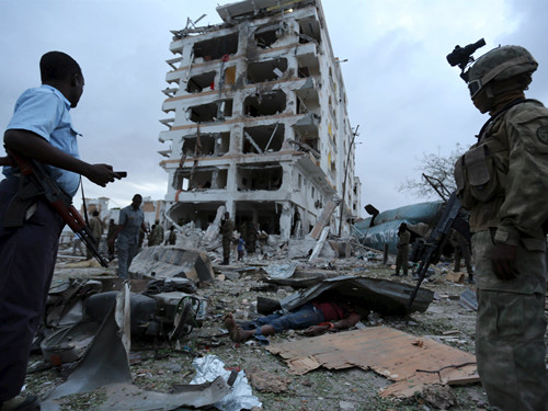索马里当地时间7月26日下午4时30分左右,宗教极端组织“青年党”对首都摩加迪沙“半岛皇宫”酒店发动恐怖袭击,中国驻索马里大使馆所在的五楼吊顶塌陷掉落。