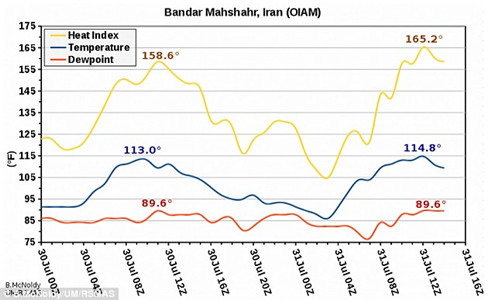 据新华国际客户端了解,伊朗胡齐斯坦省马赫夏赫尔港7月31日热指数达到74摄氏度,是有气象记录以来极为罕见的高温。这座城市拥有20多万人口。