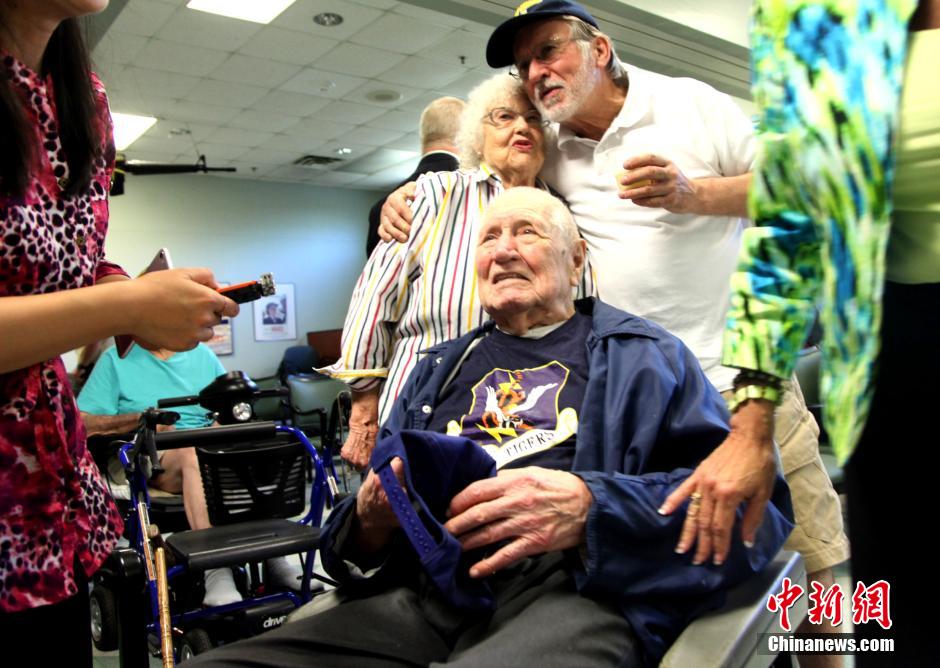 当地时间8月1日,美国路易斯安那州陈纳德航空军事博物馆创始人之一,93岁的“飞虎队”老兵理查德·谢尔曼出席活动。当日是陈纳德时任指挥官的美国空军援华志愿大队、既人们所熟知的“飞虎队”成立74周年。博物馆馆长、陈纳德将军的外孙女凯乐威呼吁人们、特别是年轻一代勿忘历史,延续飞虎队与中国人民的友谊,让美中两国携手改变未来。 中新社发 王欢 摄