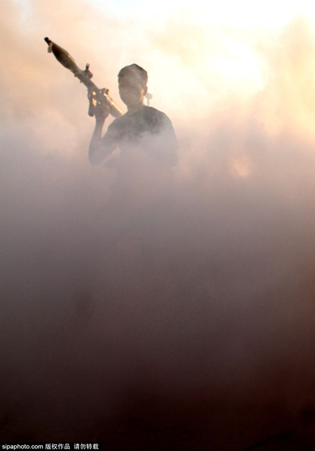 当地时间2015年8月1日,巴勒斯坦加沙拉法,哈马斯组织的“青年自由营”成员当日举行军事训练,展现技能,哈马斯领导人哈尼亚出席。
