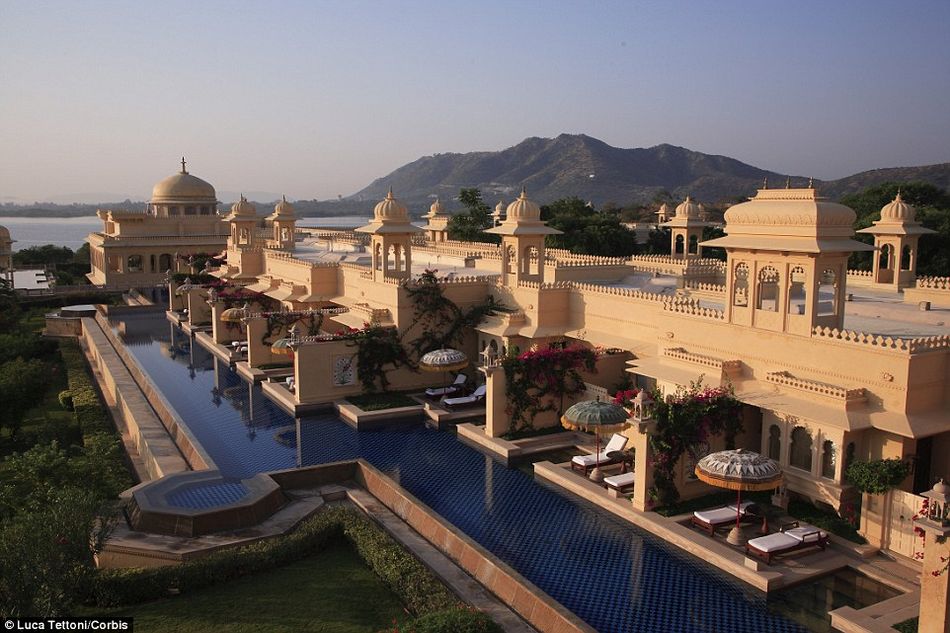 印度奥贝罗伊泳池,在这里不仅可以游泳,更可以欣赏壮丽的拉贾斯坦Mewari护城河宫殿。(网站截图)