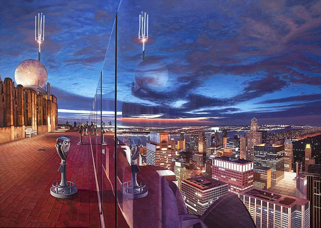 沃尔什希望能在2016年10月举办自己的个人画展,展出更多的新作品,届时那些作品将着重反映气候与环境问题。图为他画的纽约的洛克菲勒中心。