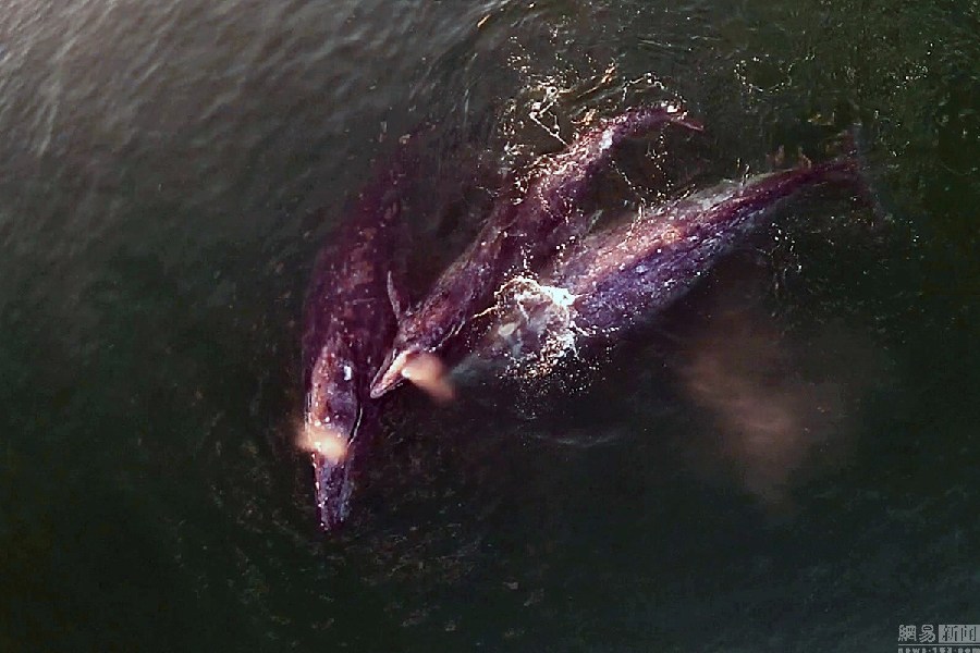 近日,墨西哥下加利福尼亚,一艘船的游客偶遇灰鲸群,野生动物摄影师Mark Carwardine用无人机拍摄鲸群图片。